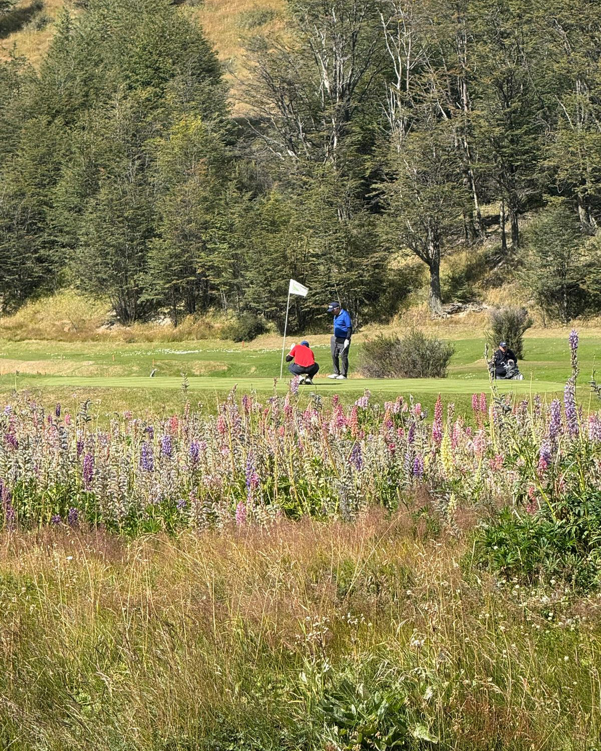 En Ushuaia, la cancha de Ushuaia Golf ofreció otro perfil, con una impronta natural muy marcada. Ubicada en un valle de gran belleza, con un río que serpentea por el medio del recorrido, y rodeada por ñires y lengas, presenta una postal muy particular del verano fueguino. El verde intenso del lugar y el entorno general le otorgan a la cancha un carácter muy especial, que fue uno de los puntos más destacados de la recorrida.